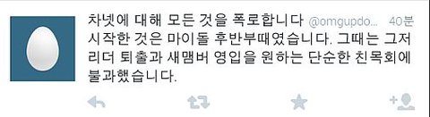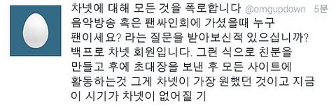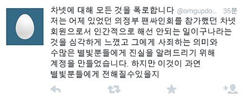 자신이 차넷의 회원이라고 밝힌 어느 익명의 게시자가 트위터에 올린 트윗들입니다.