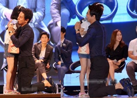 어린 팬을 위해 눈높이 포옹까지!