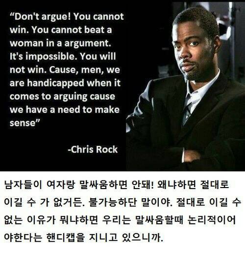 어느 유명인이 말한 남자가 여자와 말싸움 하면 안되는 이유...