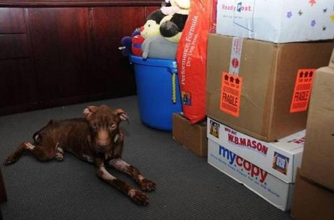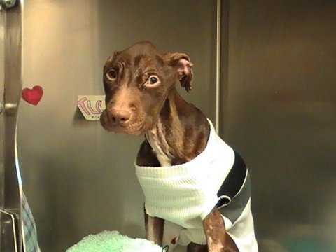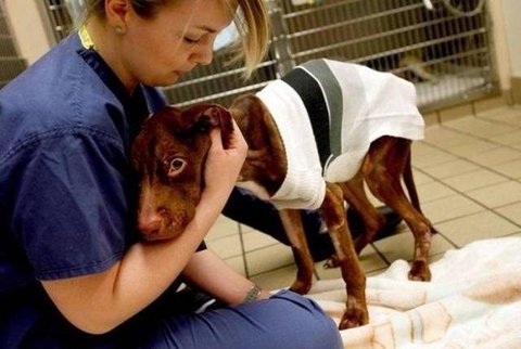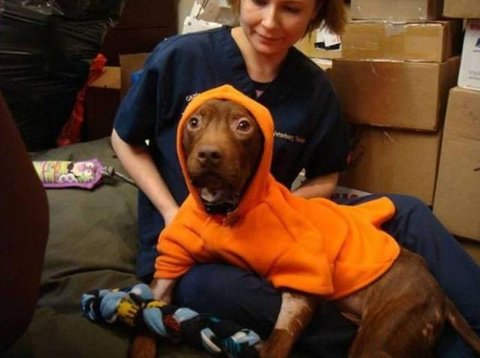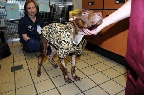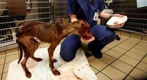 아사직전의 상태로 들어오게된 핏불테리어가 있었어요.