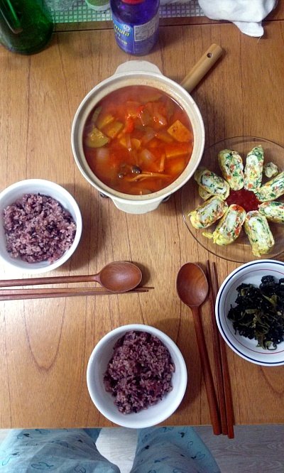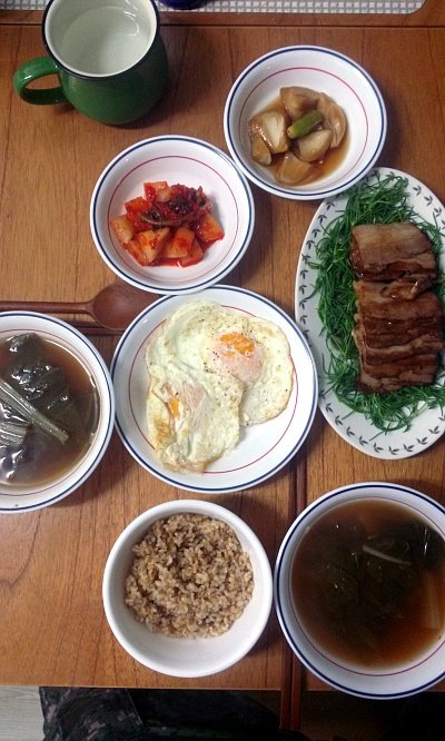 -남편이 늘 아침상을 찍어놓는데 잠옷바지나 군복바지가 가끔씩찍힘 ㅋㅋ