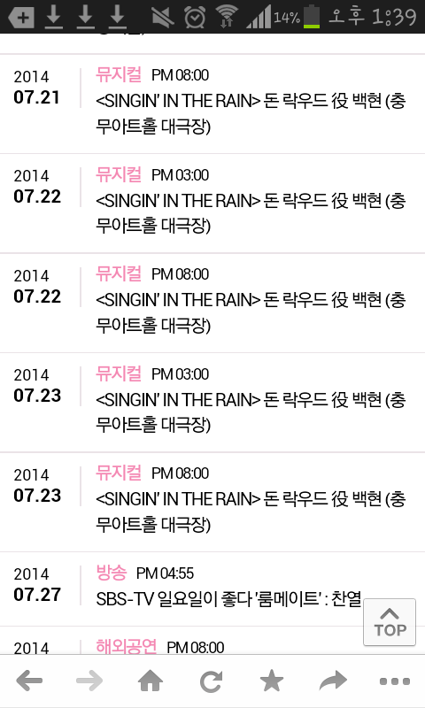 차녀리룸메이트는 올라가있는데 내일 스케줄에는 백현 뮤지컬밖에 없다...
