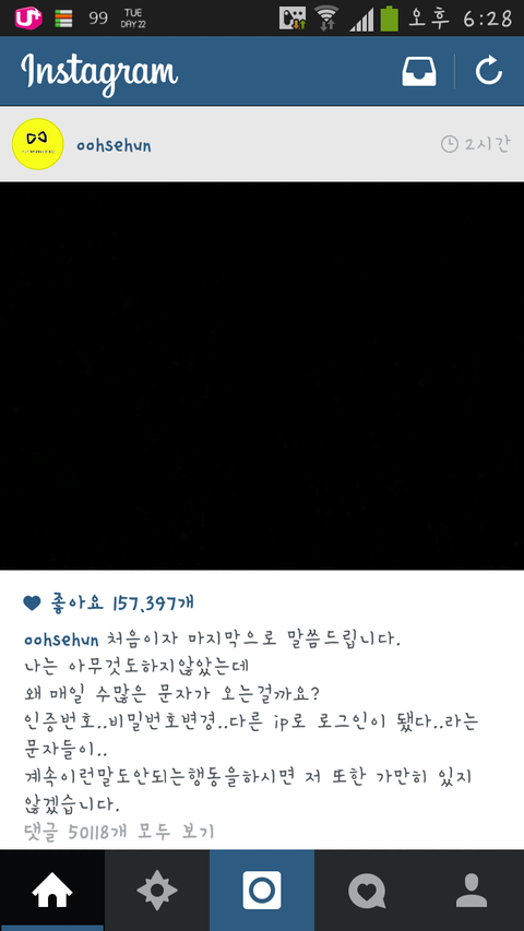 오세훈 인스타에 글 올림ㅋㅋㅋ 그만 좀 하래ㅋㅋ 그래 이제 그만 좀 해ㅋㅋ 얘가 얼마나 빡쳤으면ㅋㅋ 아오 네이트 바뀐거 개불편하다