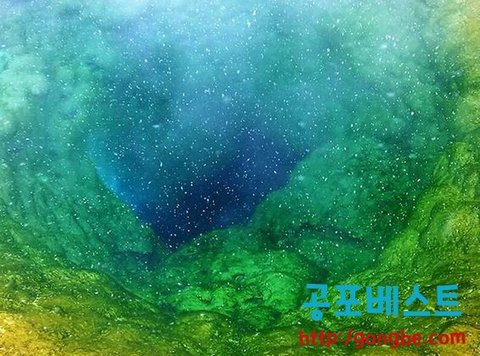 오렌지색깔 그리고 노랑색깔의 박테리아가 이 온천의 주변을 변색시켜왔다. 그리고 지금은 그 중심부로 이동해가고 있다