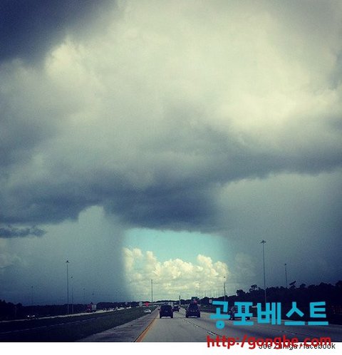 사 진은 지난 주 미국 플로리다에서 촬영된 것이다. SNS에 공개된 이후 급속히 전파되며 해외 언론들의 주목도 받은 이 이미지는 사각으로 구멍 난 폭풍우를 담고 있다. 가운데는 맑았지만 양쪽에서는 비가 여전히 쏟아졌다는 설명이다. 차들이 줄을 지어 밝은 세상을 향하고 있다.