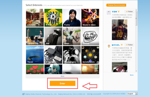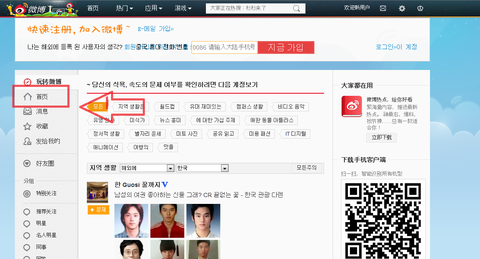 웨이보 가입후 사용하기