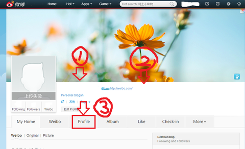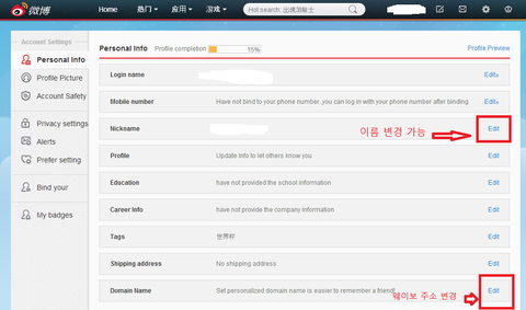 두 번째 네모에서는, 자신의 웨이보 주소를 바꿀 수 있어