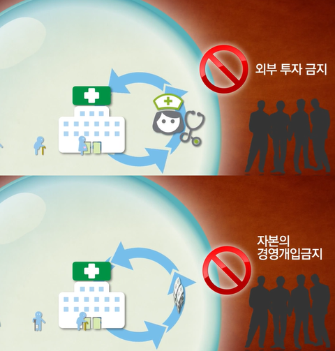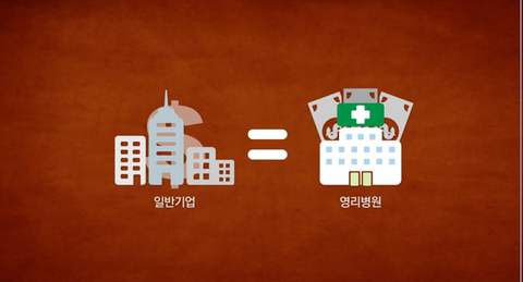 비영리인 경우에는 환자들에게 돈을 받지만 병원이 낸 수익은 다시 병원시설이나 인력에 투자해야만 함 그래서 돈을 쫓는 사업가가 투자하여 수익을 가져가거나 경영에 개입 할 수도 없음