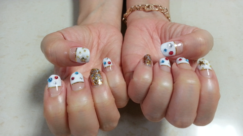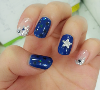 두번째로 해준 동생손이에요 여름분위기로 해주려고 여름이미지 스티커로 포인트를 줬어요