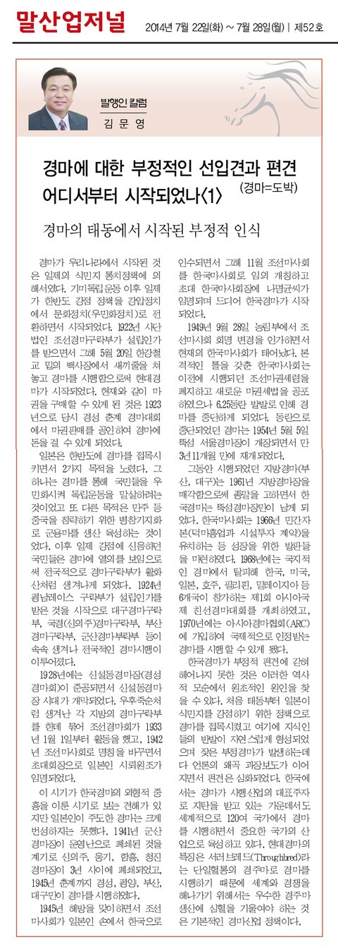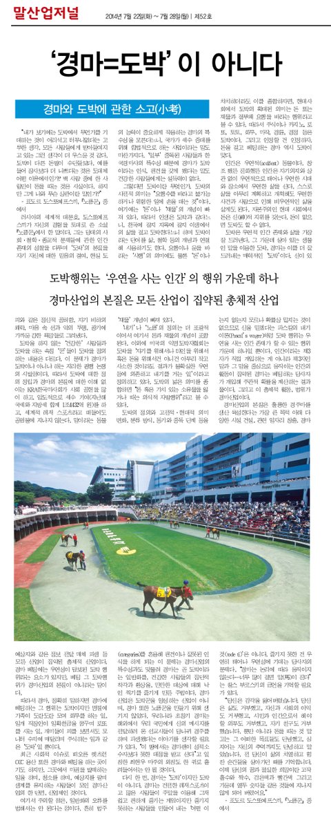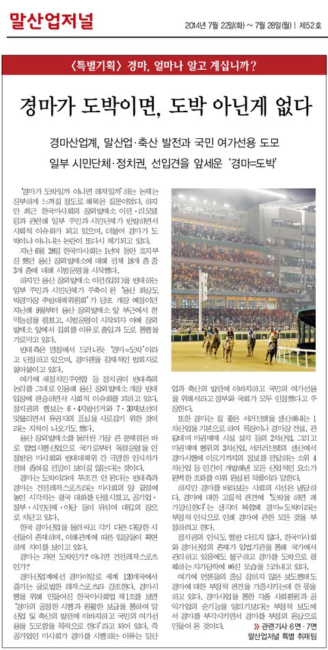이 글은 말산업저널 제52호(7월 22일자)에 실린 특집기획, '경마, 얼마나 알고 계십니까?'입니다.