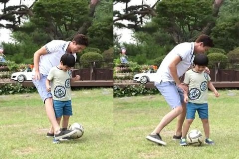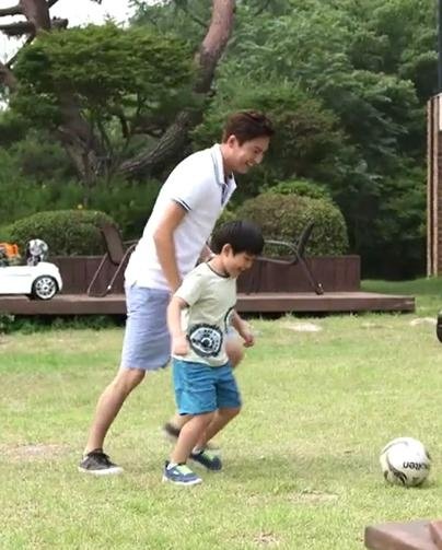 스타일리시하게 입고 자상하게 공놀이 해주는 모습이