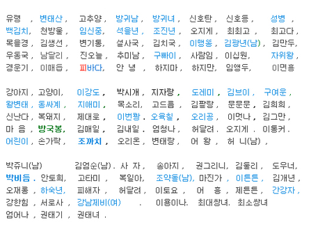 성병, 자위왕...왕변태까지.. 웃기기보단 정말 불쌍하다. 애들이름 가지고 장난 하는 부모들 정말 이해불가.