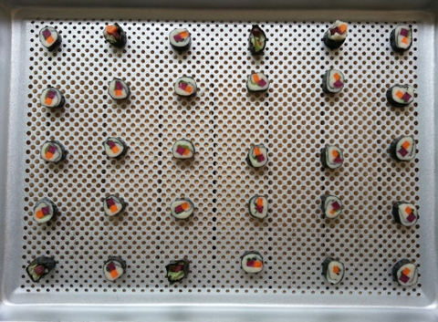 건조되면서 김밥 중간이 약간 뜨는 경향이 있지만