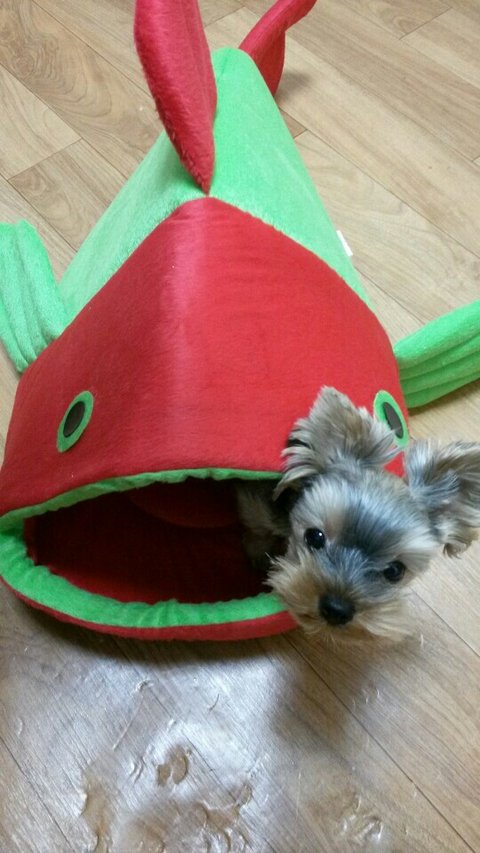 새로 물고기 쿠션하나 사줬더니 좋다고 들어가서 얼굴만 빼꼼