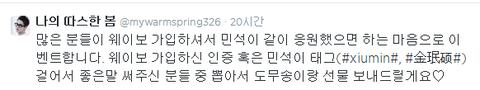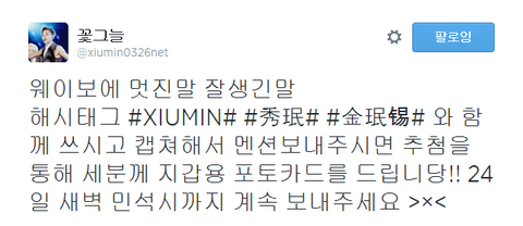 홈마들이 웨이보에 민석이 이름으로 태그 걸면 이벤트 하는 경우가 종종 있더라구