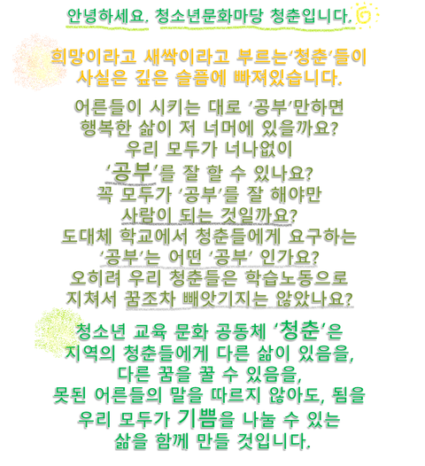 청소년문화를 형성하고자 하는 강좌입니다.