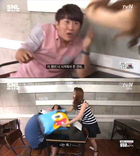 홍진호가 김민교한테 뒤집어씌고나서 레이디제인은 계속 김민교를 향해 그냥 때리고싶게 생겼네 하면서 때림 사실 같이 혀바닥내민 김민교도 잘못함 ㅋ ㅋ