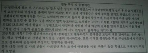 학생 기록부에 찍힌 일베 낙인