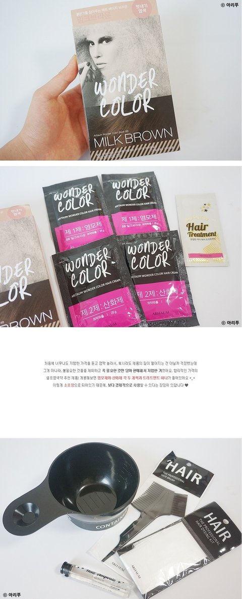 아리푸님 리뷰 보니까 아리따움에서 출시 된 원더컬러라는 셀프 염색약이 있더라고요~