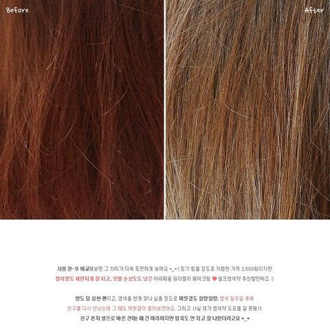 전/후 비교사진 보니까 여러분도 원더컬러 셀프 염색약으로 수지 머리색으로 염색 하고 싶지 않나요?ㅋㅋ