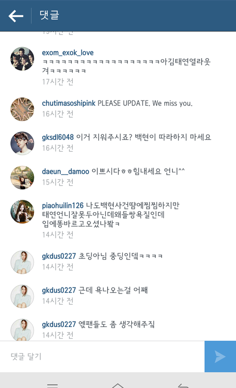 백줌들아.. 태연 인스타에서 악플달지마라