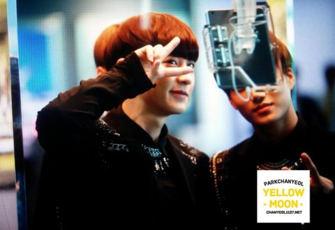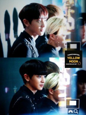 무대 오르기 전 멤버격려하는 찬열이^^