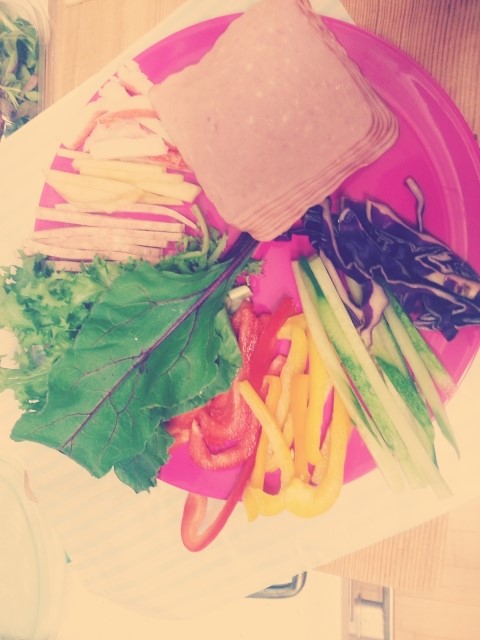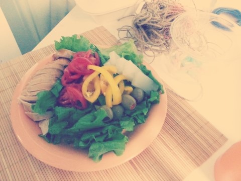 샐러드용 채소도 여러가지 색깔로 데코레이션 이쁘게해서 먹는 눈이 즐겁도록