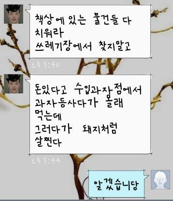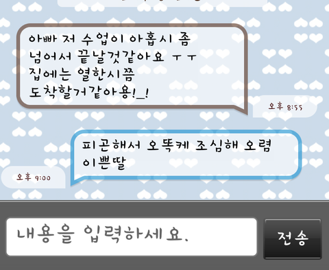 어쨋든 베톡감사하구요♥ 아빠랑 좀 더 문자한거 많이 모아와서 글 더올릴게요:)