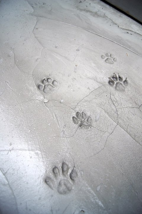 산책하다가 발견한 시멘트 위에 고양이,  강아지 발자국..ㅋㅋ
