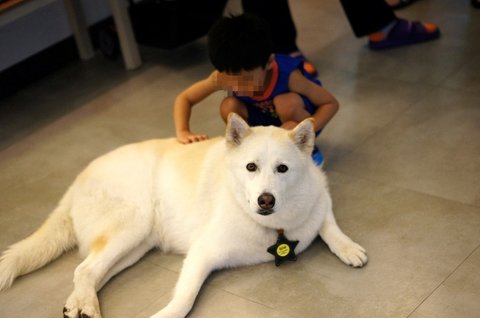 잠시 앉아서 쉬고 있는 심바를 쓰담 쓰담하고 있어요..ㅋㅋㅋ