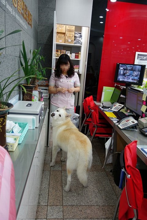 동물병원 놀러와서 카운터로 돌진해 간식을 챙기고 있어요.ㅋㅋㅋ