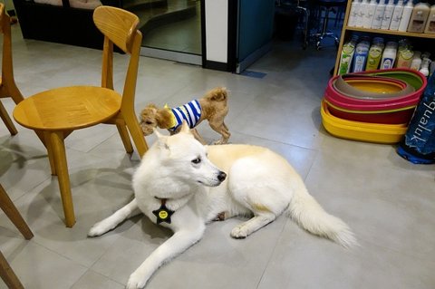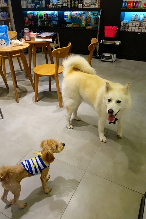 애견용품점에 놀러왔어요..ㅋㅋ 맛있는거 주세요~ 하면서 또 따라가고 있어요.ㅋㅋㅋㅋㅋ