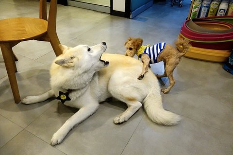 심바에게 으릉으릉을 하는 몇 안되는 개 중에 한마리..ㅋㅋ