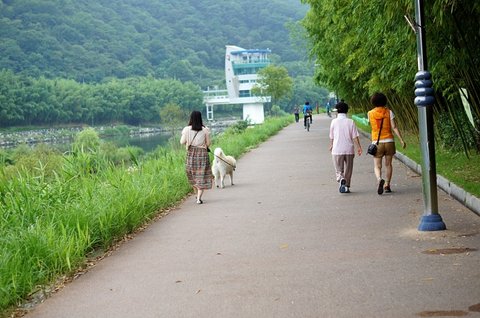 저녁에 산책가고 있어요 어두워지네요.