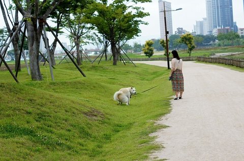 태화강 대공원에 여동생과 함께 심바데리고 산책나왔어요.