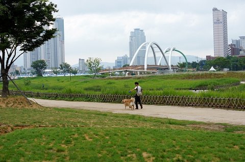 강변 산책로로 나왔어요.
