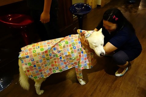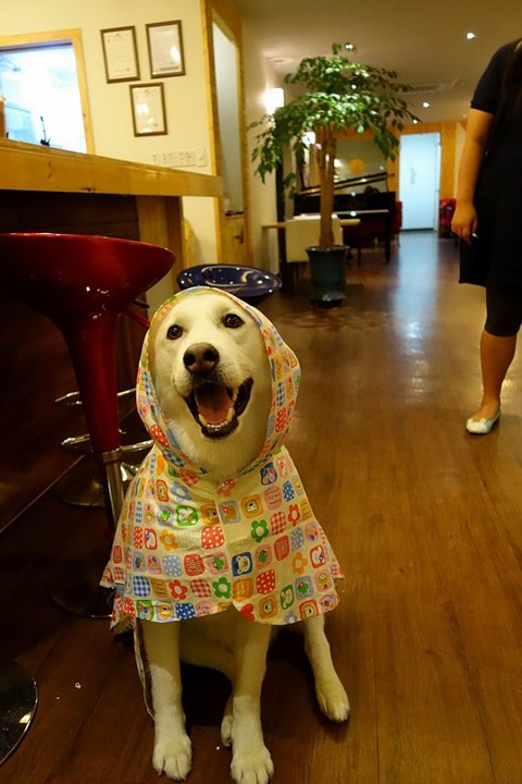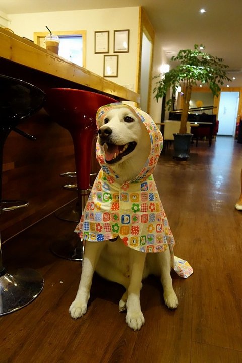 옷입은 심바가 신기한 라테..ㅋㅋㅋㅋㅋ빤히 바라보고 있어요.