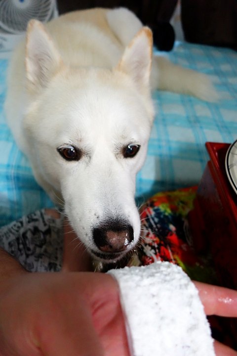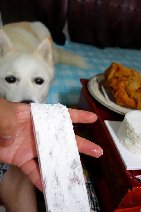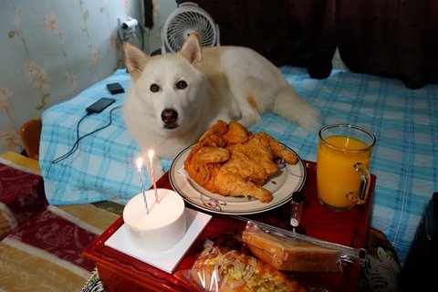 사람먹는 음식을 잘 주지 않지만 오늘은 특별한 날이니.. 심바도 조금 맛보여줬어요.