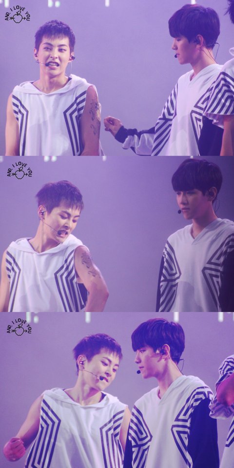 콘서트 중 민석이형의 타투를 잘금잘금 띠는 백현이