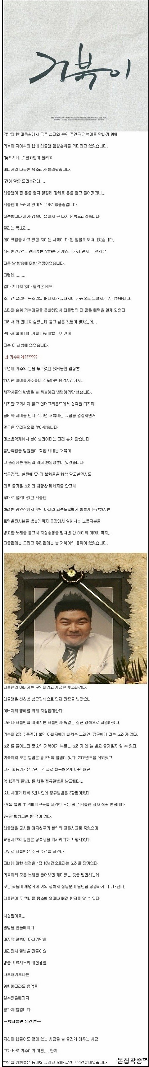 초등학교때 거북이노래 뭔지도 모르고 좋아서 따라불렀던 것이 생각이나네요. 빨간꽃 노란꽃~ 이러면서 친구들이랑 부르고 학교에서도 빙고라는 노래를 정말 처음으로 노래가사도 외워보고 엄마께서도 그 당시 노래 별로 안좋아하셨는데 거북이 노래는 줄곧 들으셨던 기억이 나네요. 하늘나라에가신지 꽤 시간이 흘렀지만 그 열정 잊지않겠습니다. 그리고 그 열정으로 자극받아 매 순간순간 감사하며 살께요. 좋은 노래 남겨주셔서 감사합니다. 삼가 고인의 명복을 빕니다.