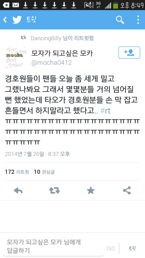 팬더들도 오늘 많이 속상했지? ㅠㅠ