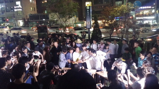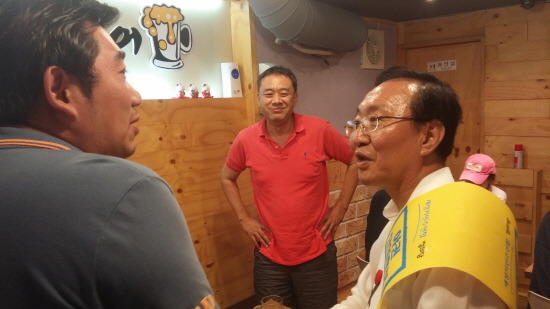 노회찬 후보가 오늘 하루의 마무리로 호프집 투어를 시작합니다.