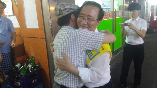 막걸리집에서 약주 한 잔 걸치시다가 인사하러 들어온 노회찬 후보를 보시더니