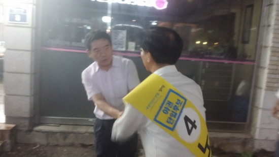 노회찬 후보를 보시자마자 반색하며 가시던 길 멈추고 응원 말씀을 해 주시던 그분.
