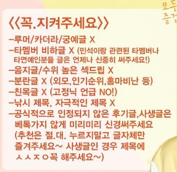 슈밍톡 깨끗하게 잘 지켜나가고 우리도 즐겁고 좋은 마음으로 판질하자~~♥