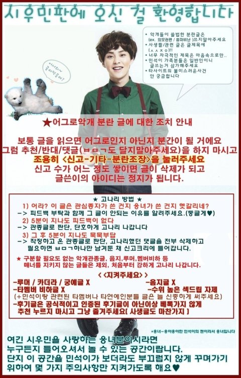 웅녀들도 고나리 할 글에 둥글게 고나리 해주고 고나리 받은 웅녀는 기분 나빠하지말고 시우민을 아끼고 사랑한다면 좋은 마음으로 따라줘~ 부탁해