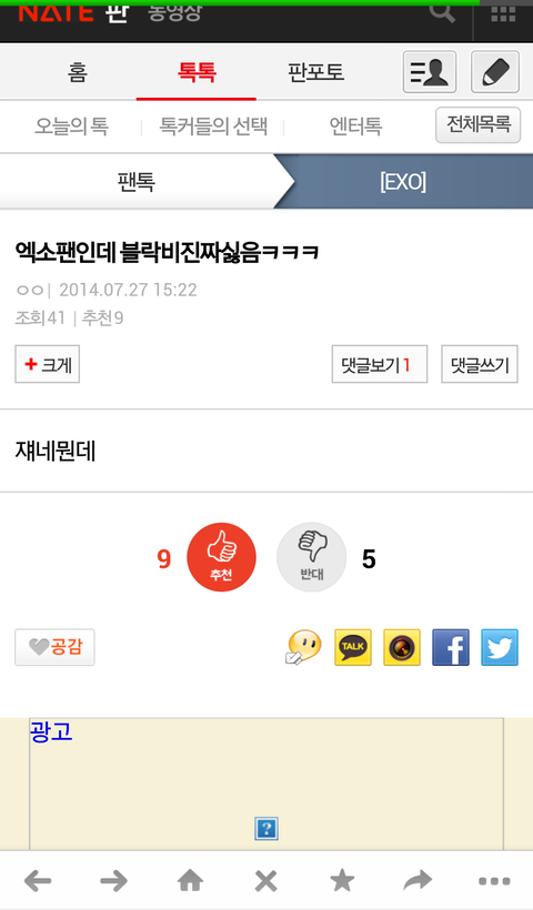 엑소톡에서 엑소팬인데 ㅇㅈㄹ 팬코 티나 타퀴년아