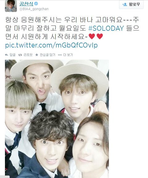 오늘 인기가요 보신분은 다 알거임...여자그룹분이랑 점수차가 장난이 아니였음.블락비,비스트,인피니트 등등 많은 타팬덤분들께서 도와주셔서 문자투표는 만점이였지만(진짜 너무너무 감사했음)...사전점수 뜰때부터 애들 웃는게 왠지 걍 체념해서 웃는것같아서 얼마나 마음아프던지...아무튼 우리가 이번에 단합이 잘 안됐던거니까 여자그룹분들 1위기사에 축하해드리려 들어감.바나들은 절대 들어가지마요.진짜 놀램. 비포 바나 안티카페인줄...다른그룹 기사에 비포 악플이 반 이상이고 추천도 장난아님...그 여자그룹팬분들이 아닌것같음...누구팬인지는 알아서 상상하시길....안좋은 소식만 늘어놔서 미안하오.. 근데 우리때문에 또 b1a4 욕먹을까봐 항상 무섭고 요즘따라 그냥 팬질하기가 힘듬...이렇게 바나 단합안돼는것도 진짜 드물었는데...조금만 힘을 내요,바나...
