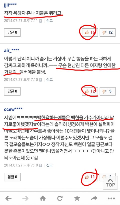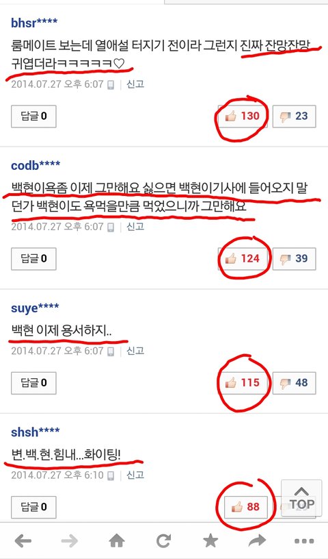 오히려 반대로 쉴드치거나 우쭈쭈하는댓글이 더많은데다 추천수도더많더라;;백현이를 무작정까라는게아니라 솔직히 이렇게까던사람들이 왜갑자기 큥아♥이래;;;,예전엔 백현쉴드치면 백줌꺼져;;;ㅗ이러고 더심한욕도 아무렇지않게했으면서;;;엓팬들진짜 이중인격이야?