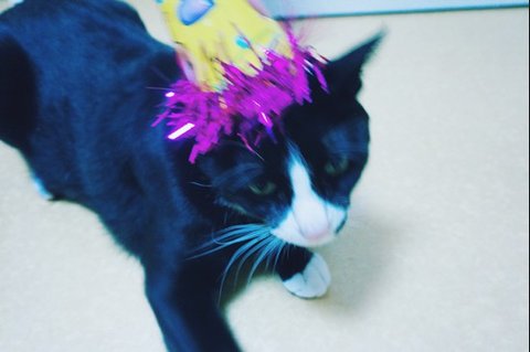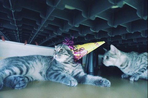 꼬깔쓰고 냅다 도망가더니만 침대밑에서 요러고 있초ㅑ